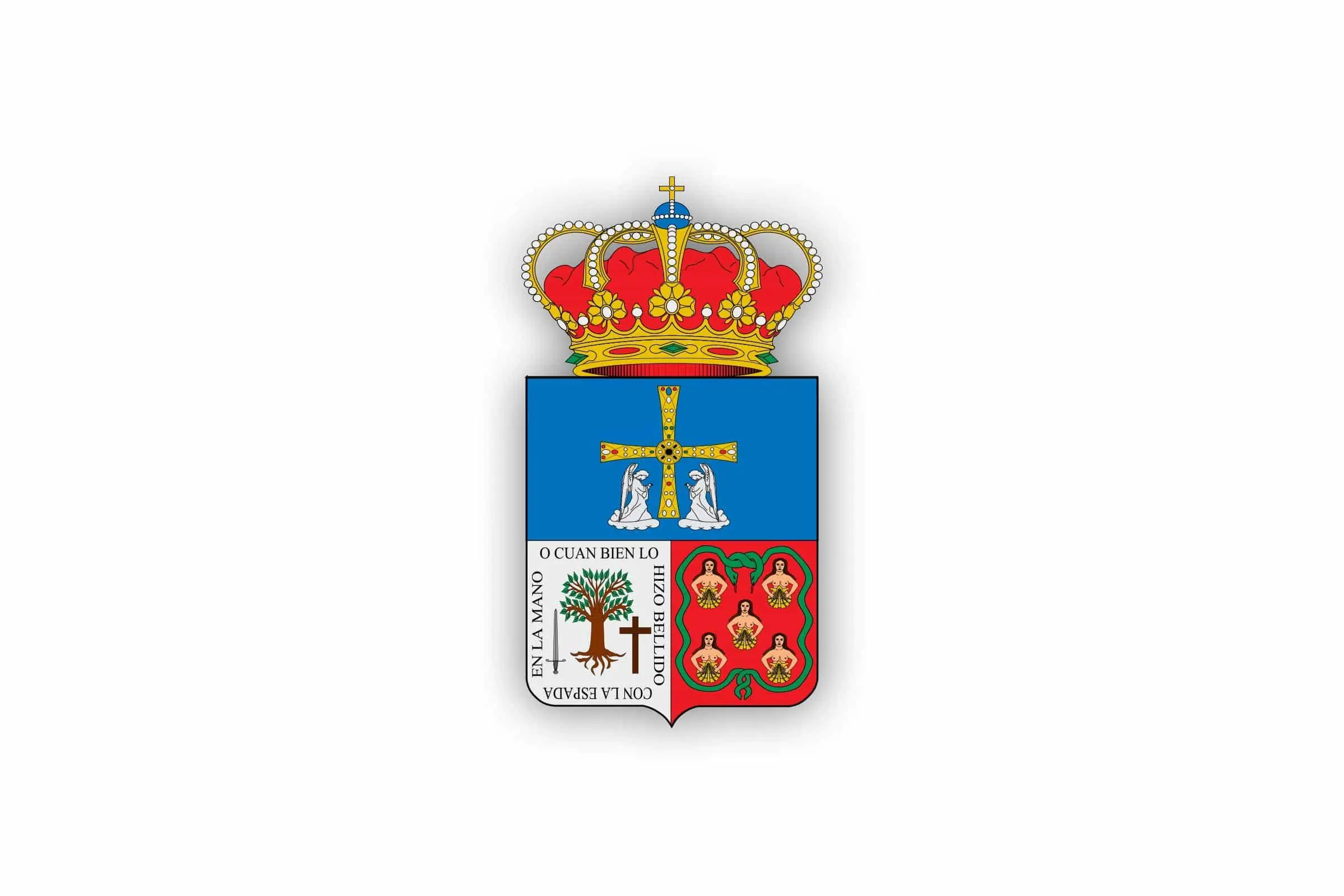 Escudo del concejo de Teverga. El escudo concejil está medio partido y cortado. El primer cuartel partido nos muestra la Cruz de los Ángeles y simboliza la dependencia que Teverga tuvo del obispado de Oviedo durante siglos. En el segundo cu ...
